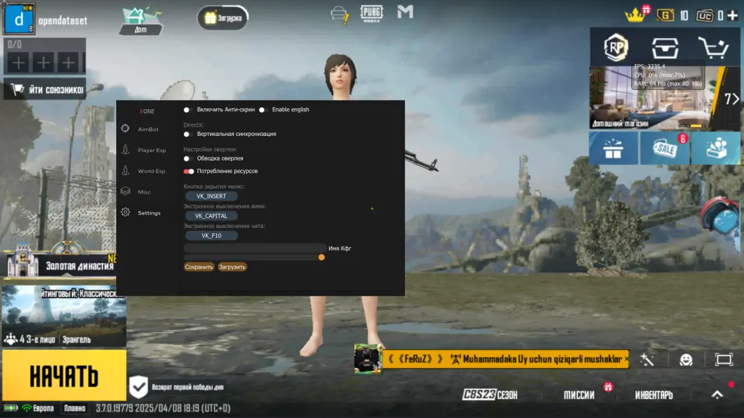 Экстернал чит для PUBG Mobile, предназначенный для использования на эмуляторе Gameloop.